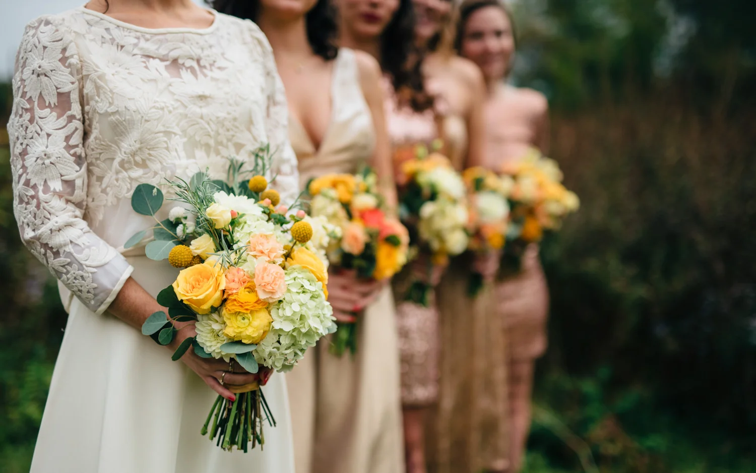 Bridesmaids Dresses (left to right in ceremony photo):